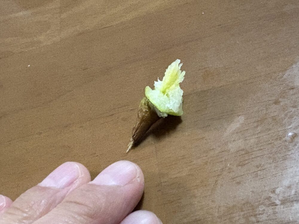 下手だけ残して、果肉も皮も種もみーんな食べてしまいました。