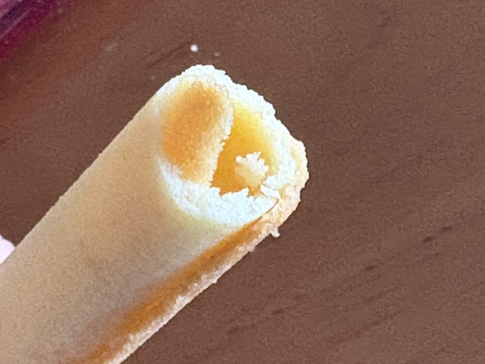 端っこがちょい色が濃いのも、早々って感じ